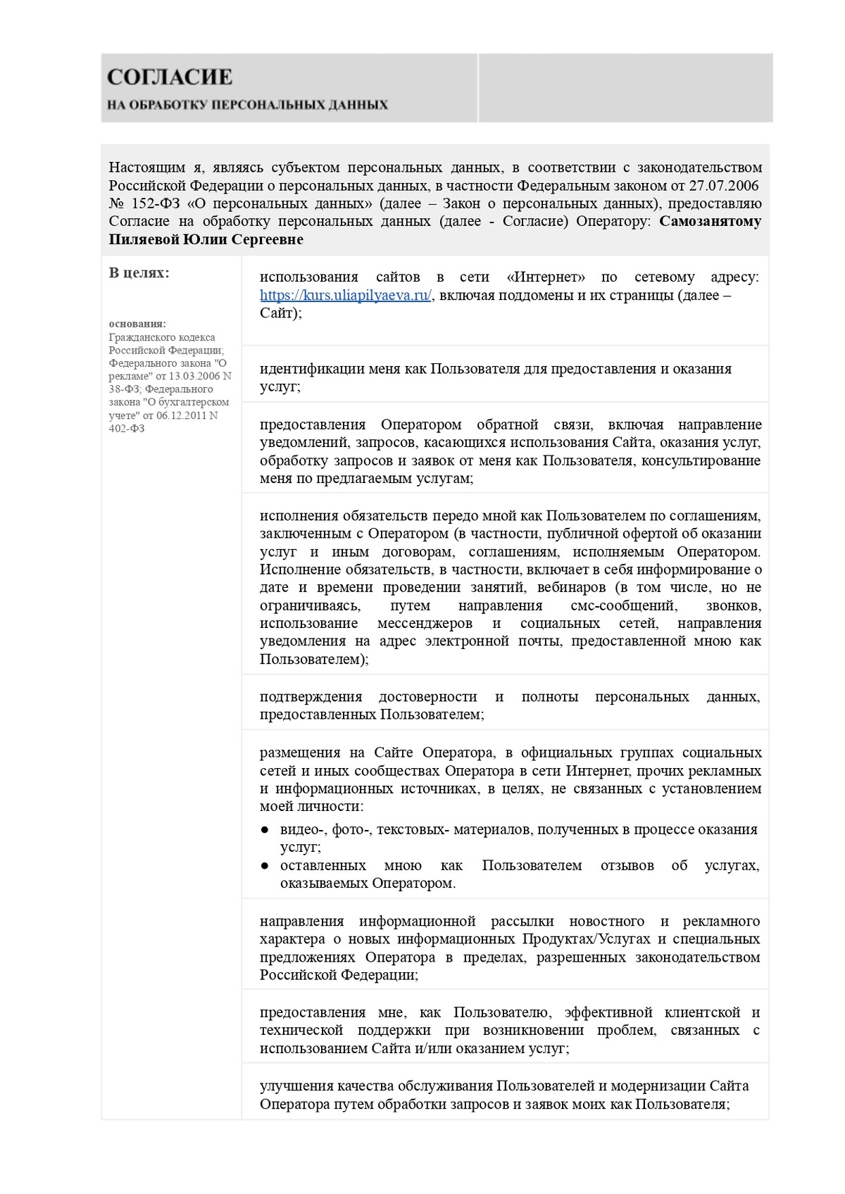 Политика обработки персональных данных. Согласие на обработку персональных данных